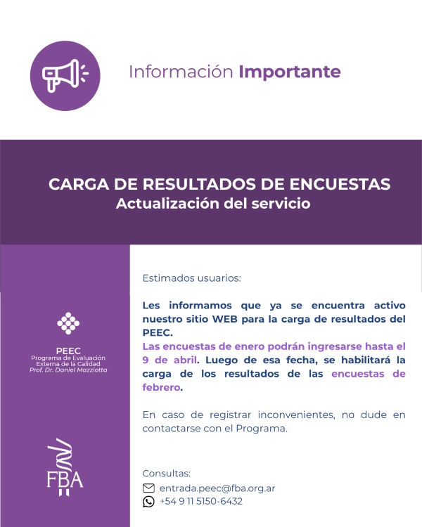 FBA > NOVEDADES DE FBA > NOTICIAS > PEEC: Comunicado para Usuarios
